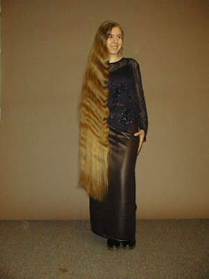 Never mind the impracticalities of having hair longer than your waist, it must be a real pain to wash, comb and move with. I imagine it would hurt like hell when people stand on it too. In my opinion, it is a scary looking fetish gone way too far. I think most of you would agree, no? Otherwise, please help me, inform me of this weird fascination with growing your hair freakishly long.